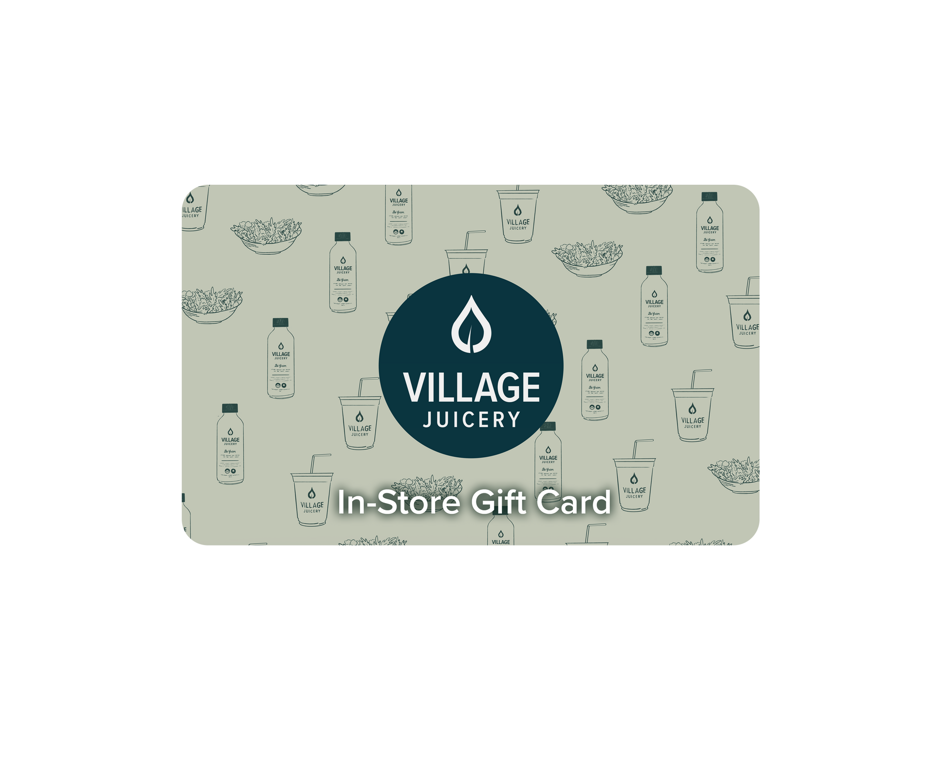 *For purchases at Village Juicery physical storefronts only. For purchases in our Online Store see our Online Store Gift Card.