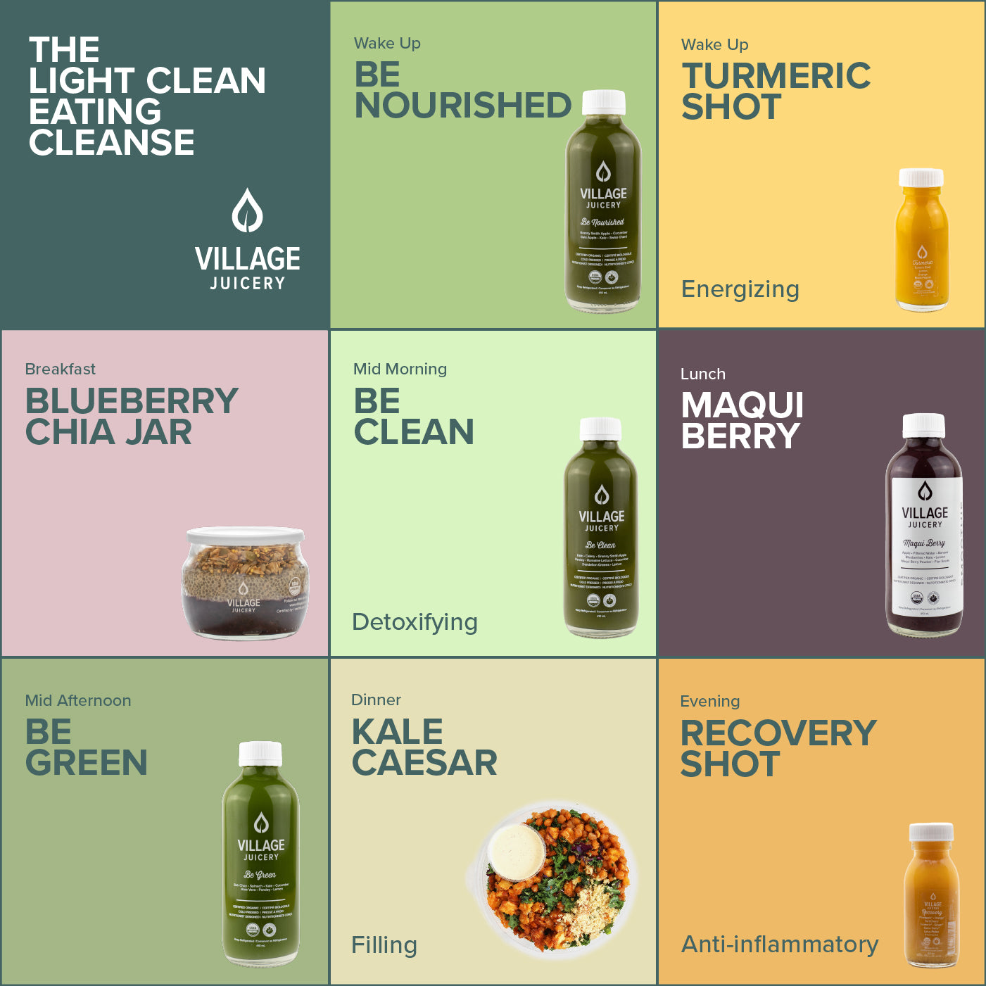 This is a great option to choose as you ease into any pure juice cleanse or just to have a stress-free day with full nutrition but with fewer total calories than the Clean Eating Cleanse.