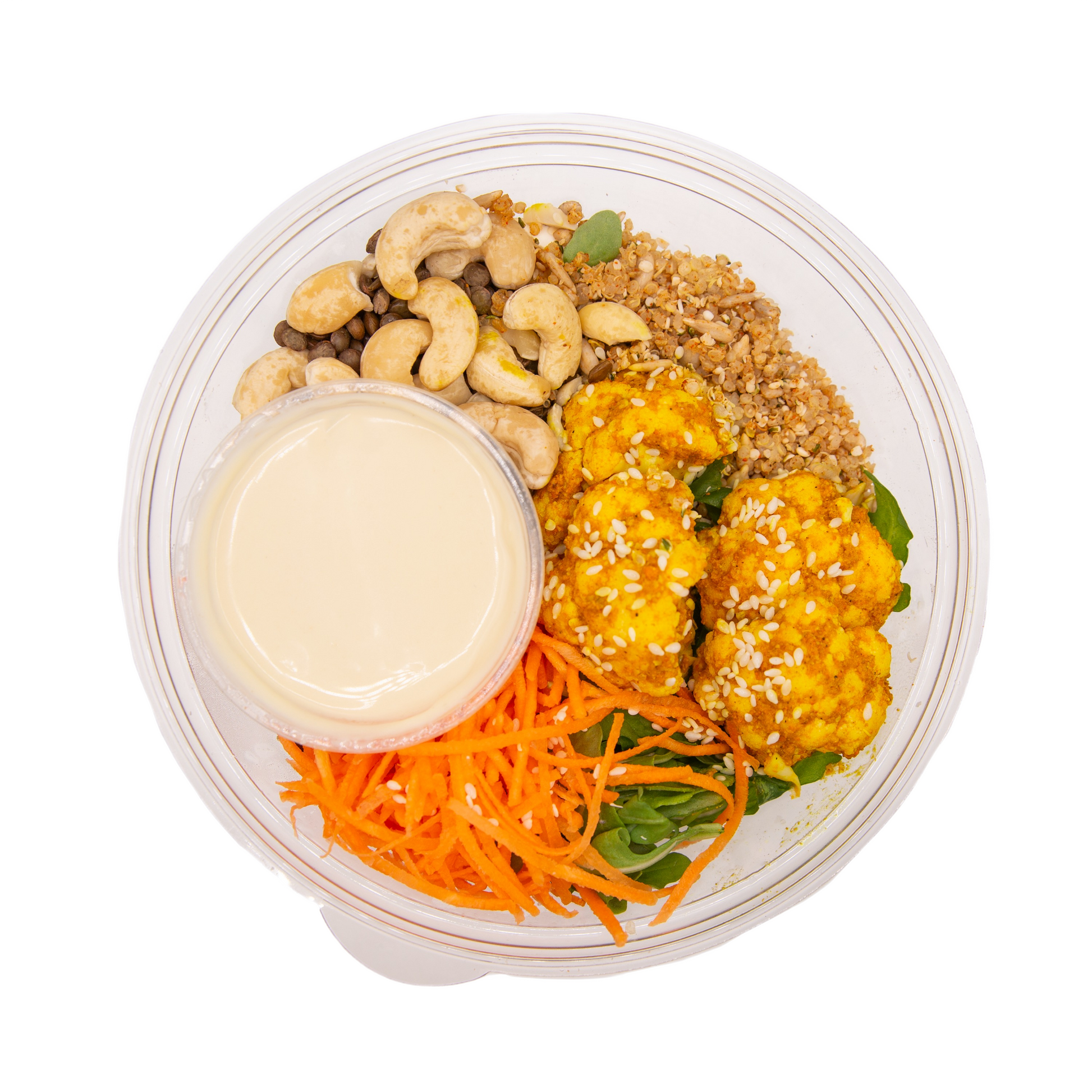 This protein-packed salad is made with curried cauliflower, fresh arugula and crunchy cashews paired with our creamy tahini dressing. 22g of protein!